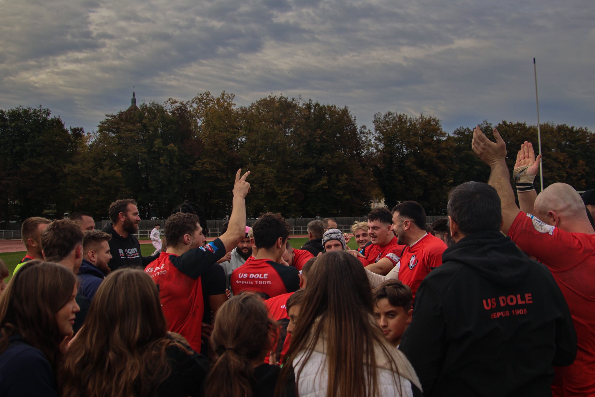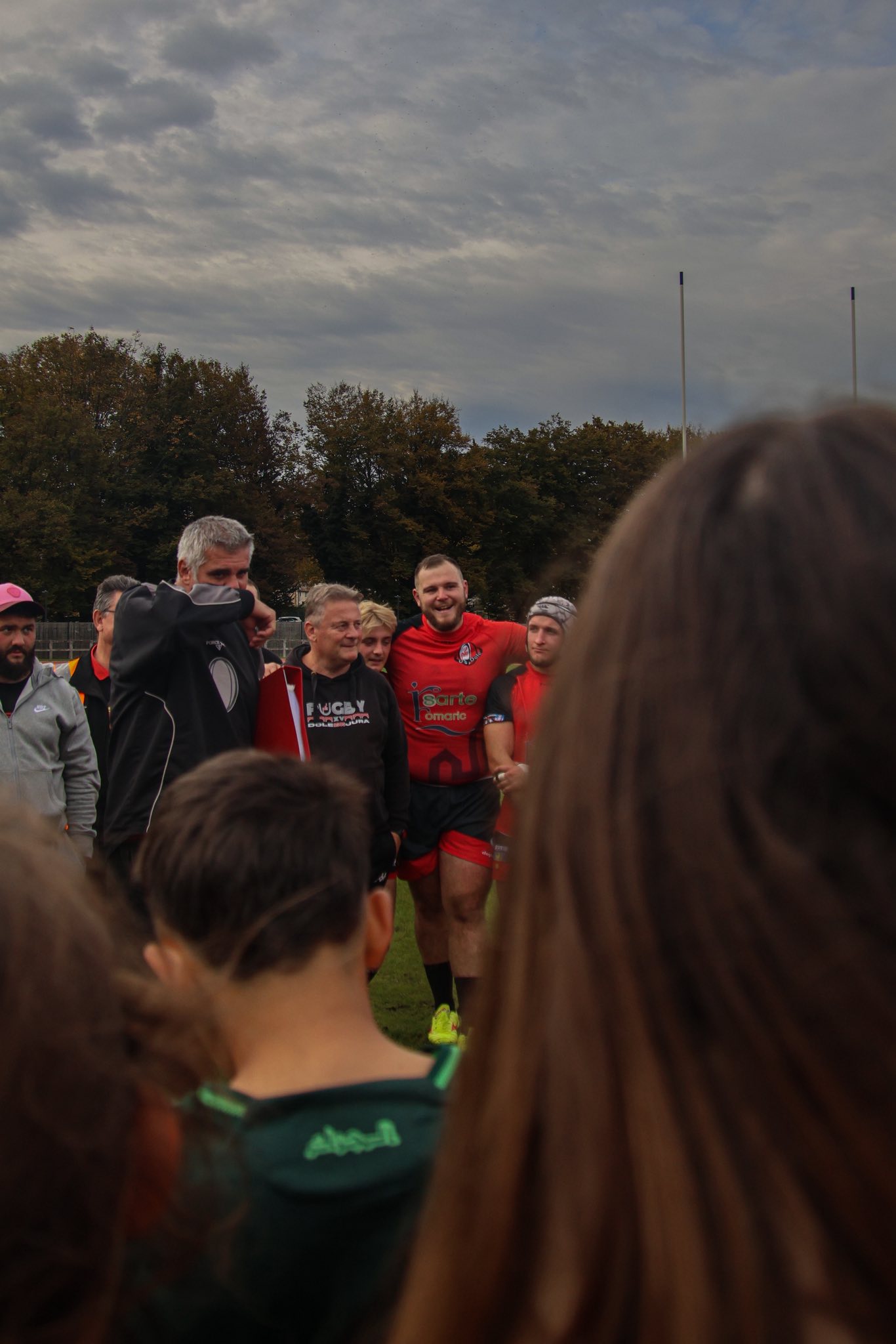 Le match s’est terminé sur une belle image : les joueurs des deux équipes réunis pour une photo commune, symbole d’amitié et de solidarité entre Jurassiens